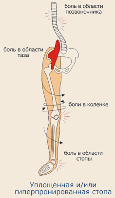 Плоскостопие — это распластывание стопы из-за того, что связки и мышцы свода не держат веса тела. Боли, связанные с плоскостопием, появляются не только в самих стопах, но и в голеностопных, коленных, тазобедренных суставах, в позвоночнике. Даже головные боли могут быть следствием плоскостопия.